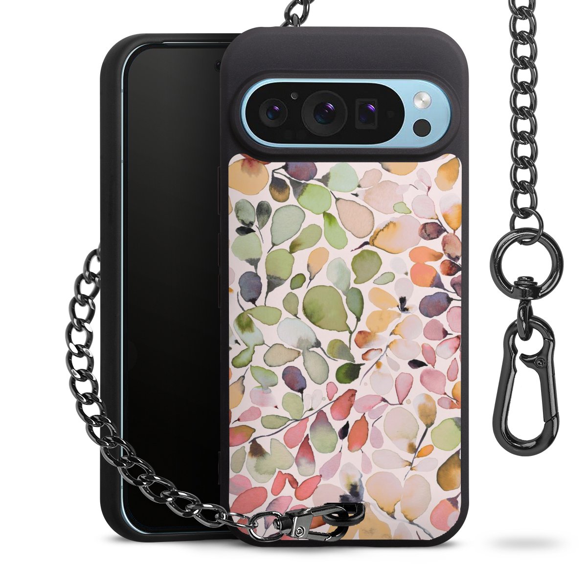 • Mattschwarze Handyhülle mit Metallkette