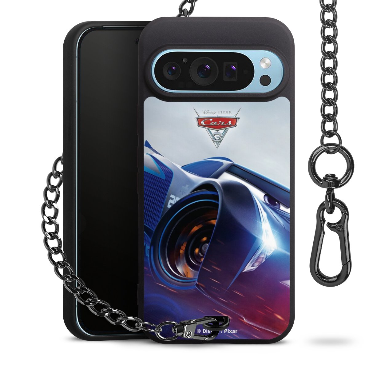 • Mattschwarze Handyhülle mit Metallkette