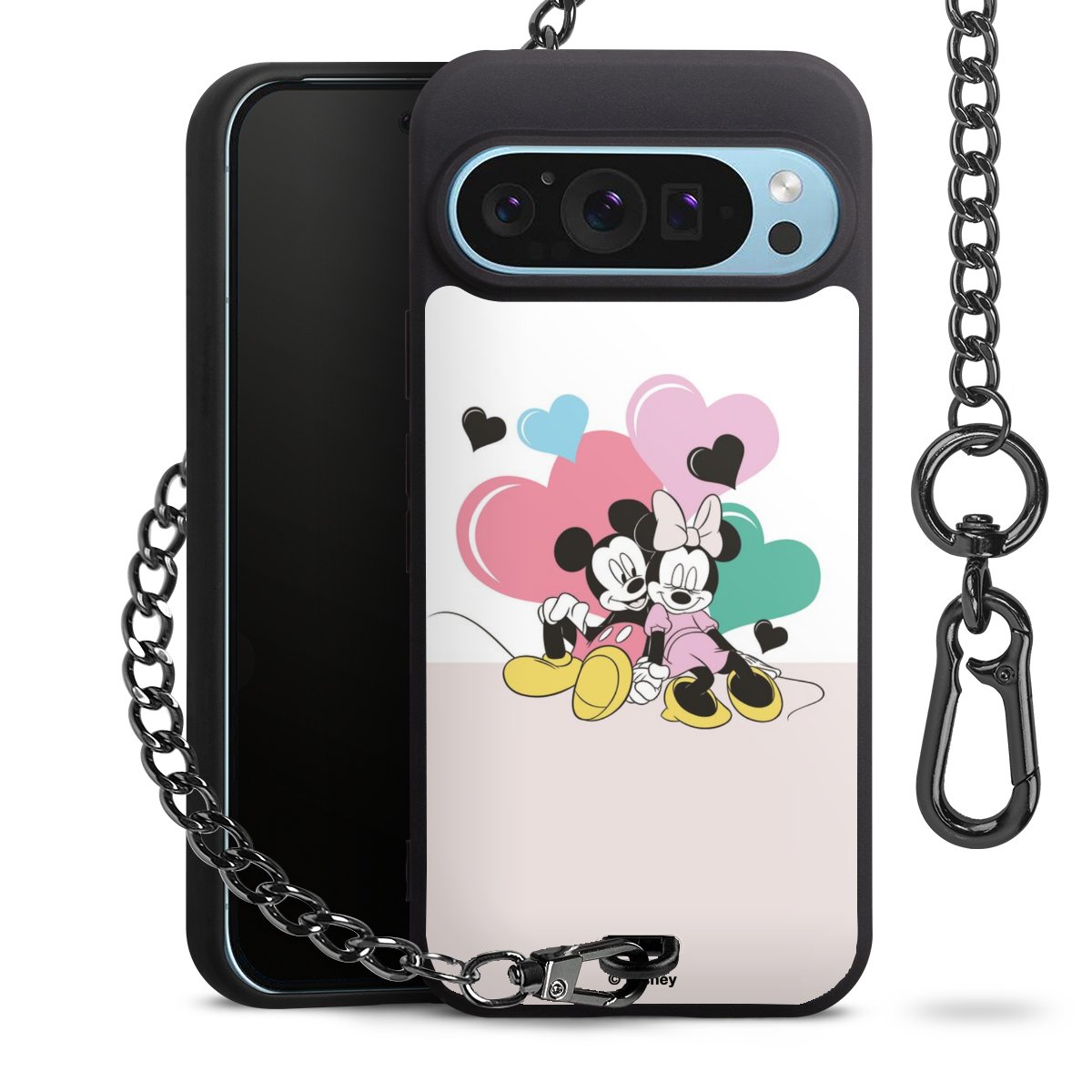 • Mattschwarze Handyhülle mit Metallkette