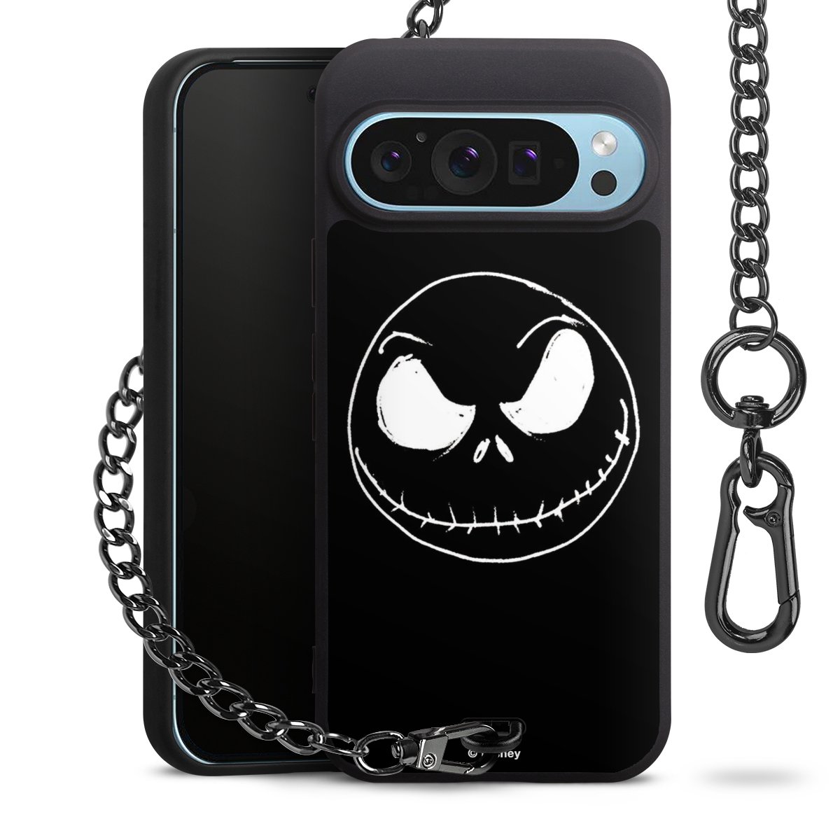 Die mattschwarze Silikon-Handyhülle besteht aus robustem TPU (thermoplastisches Polyurethan). Sie ist flexibel und schützt Dein Smartphone vor Stößen und Kratzern. Die Kette sowie der Karabinerhaken sind aus Metall in Gunmetal-Optik gefertigt. Für dieses Produkt kommen ausschließlich TÜV-geprüfte Materialien zum Einsatz.