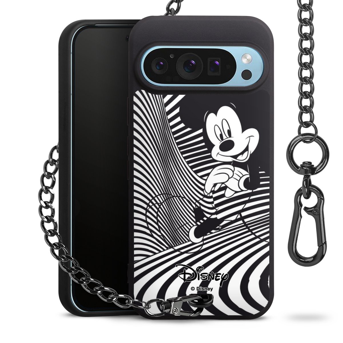 • Mattschwarze Handyhülle mit Metallkette
