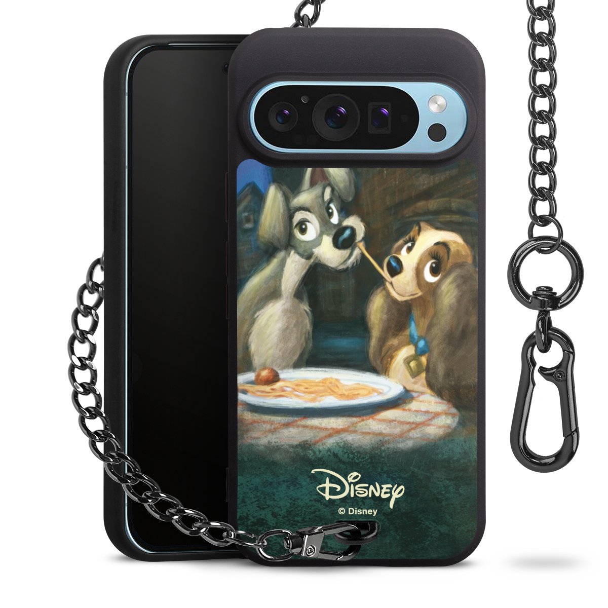• Mattschwarze Handyhülle mit Metallkette
