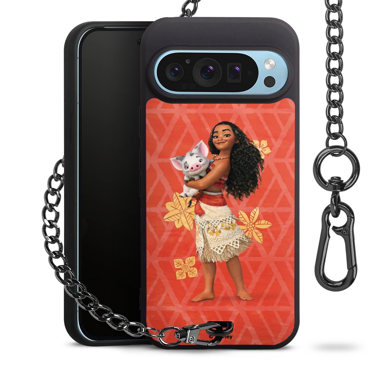 - Mattschwarze Handyhülle mit Metallkette