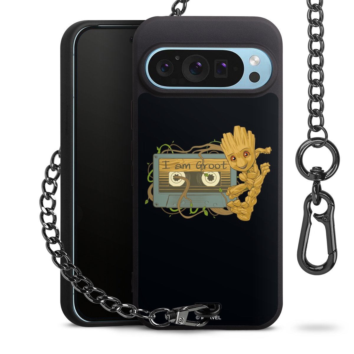 Die mattschwarze Silikon-Handyhülle besteht aus robustem TPU (thermoplastisches Polyurethan). Sie ist flexibel und schützt Dein Smartphone vor Stößen und Kratzern. Die Kette sowie der Karabinerhaken sind aus Metall in Gunmetal-Optik gefertigt. Für dieses Produkt kommen ausschließlich TÜV-geprüfte Materialien zum Einsatz.