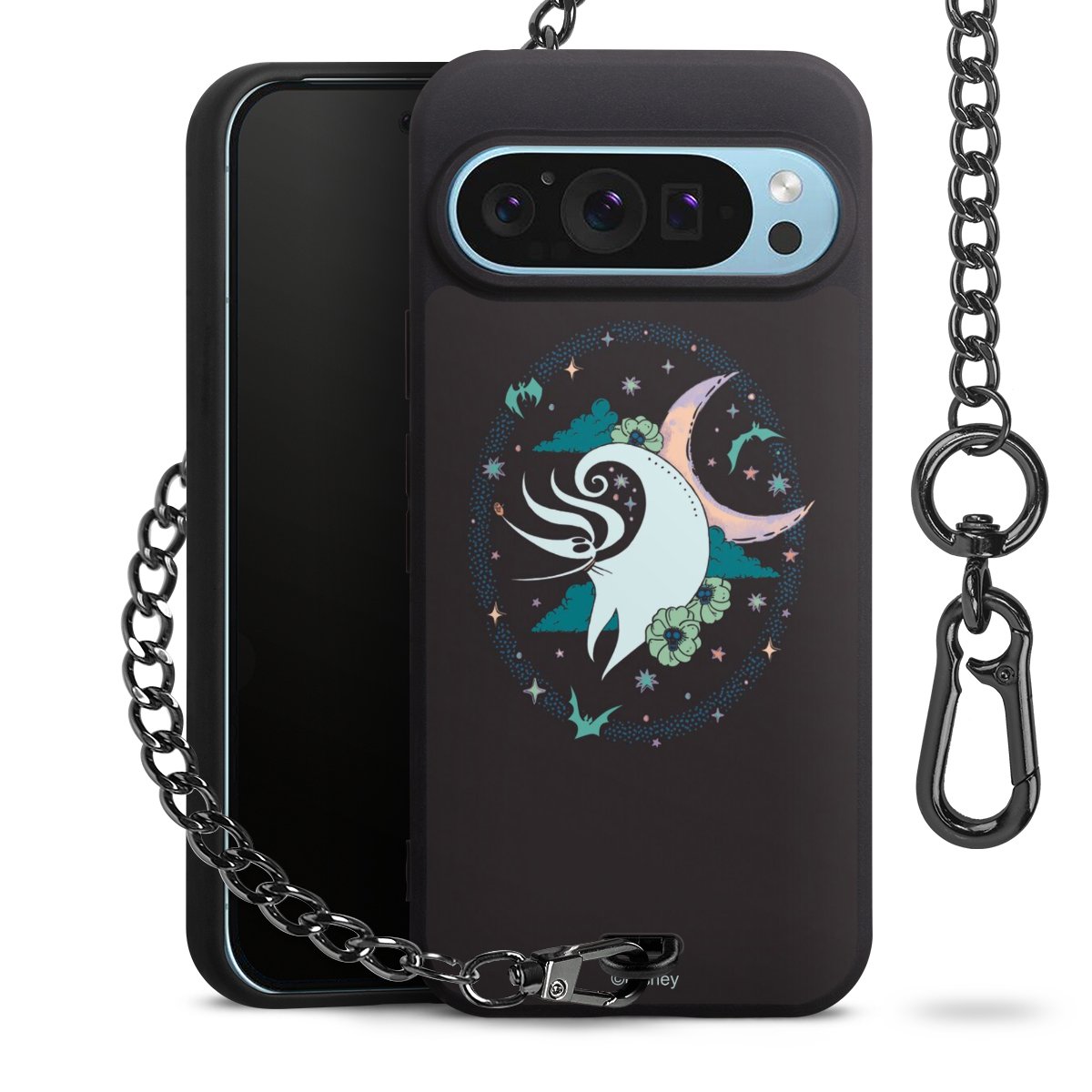 • Mattschwarze Handyhülle mit Metallkette