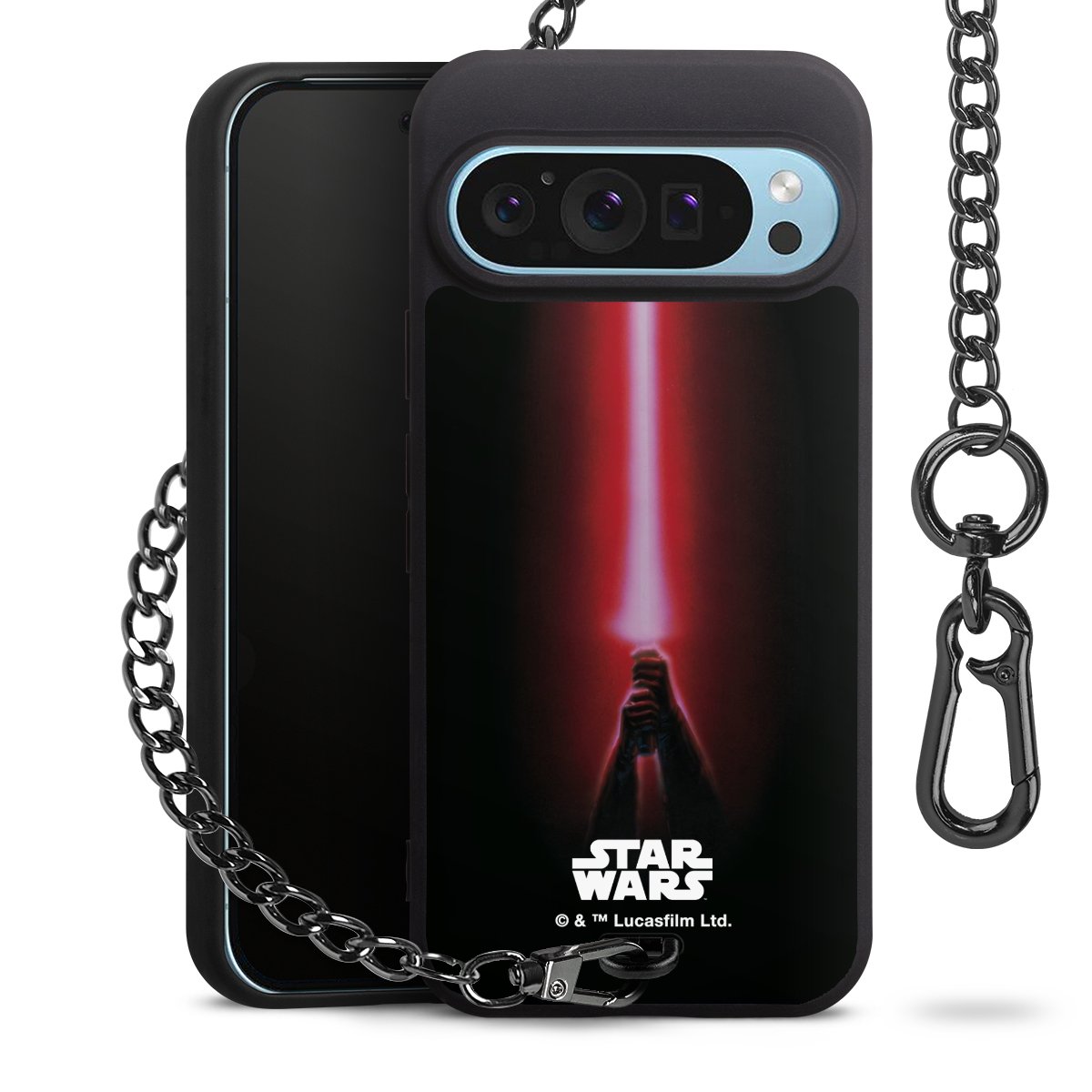 Die mattschwarze Silikon-Handyhülle besteht aus robustem TPU (thermoplastisches Polyurethan). Sie ist flexibel und schützt Dein Smartphone vor Stößen und Kratzern. Die Kette sowie der Karabinerhaken sind aus Metall in Gunmetal-Optik gefertigt. Für dieses Produkt kommen ausschließlich TÜV-geprüfte Materialien zum Einsatz.