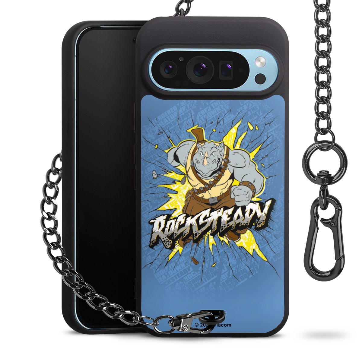 Die mattschwarze Silikon-Handyhülle besteht aus robustem TPU (thermoplastisches Polyurethan). Sie ist flexibel und schützt Dein Smartphone vor Stößen und Kratzern. Die Kette sowie der Karabinerhaken sind aus Metall in Gunmetal-Optik gefertigt. Für dieses Produkt kommen ausschließlich TÜV-geprüfte Materialien zum Einsatz.