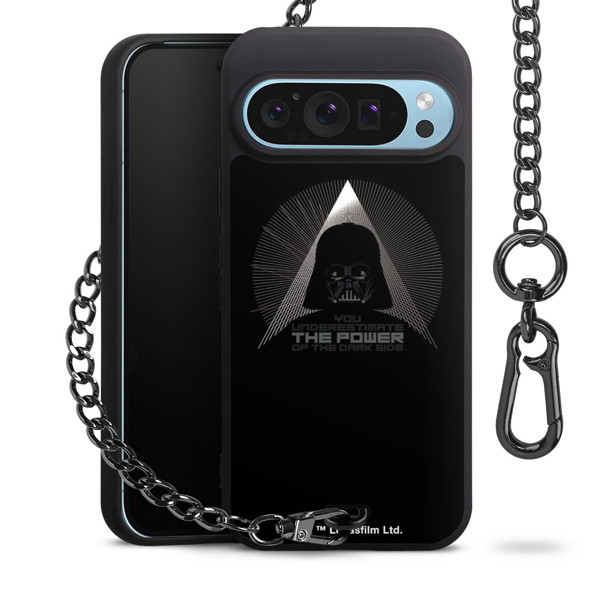 Die mattschwarze Silikon-Handyhülle besteht aus robustem TPU (thermoplastisches Polyurethan). Sie ist flexibel und schützt Dein Smartphone vor Stößen und Kratzern. Die Kette sowie der Karabinerhaken sind aus Metall in Gunmetal-Optik gefertigt. Für dieses Produkt kommen ausschließlich TÜV-geprüfte Materialien zum Einsatz.