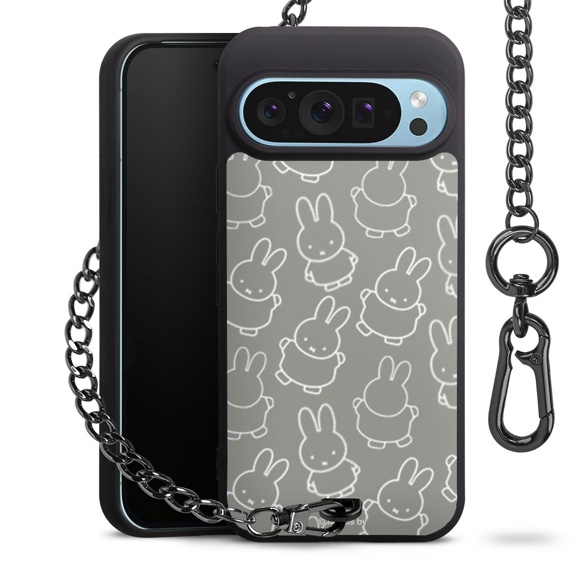 Die mattschwarze Silikon-Handyhülle besteht aus robustem TPU (thermoplastisches Polyurethan). Sie ist flexibel und schützt Dein Smartphone vor Stößen und Kratzern. Die Kette sowie der Karabinerhaken sind aus Metall in Gunmetal-Optik gefertigt. Für dieses Produkt kommen ausschließlich TÜV-geprüfte Materialien zum Einsatz.