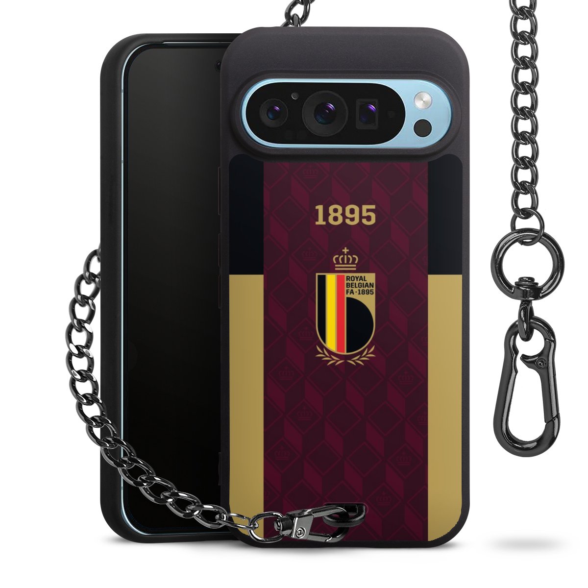 Die mattschwarze Silikon-Handyhülle besteht aus robustem TPU (thermoplastisches Polyurethan). Sie ist flexibel und schützt Dein Smartphone vor Stößen und Kratzern. Die Kette sowie der Karabinerhaken sind aus Metall in Gunmetal-Optik gefertigt. Für dieses Produkt kommen ausschließlich TÜV-geprüfte Materialien zum Einsatz.