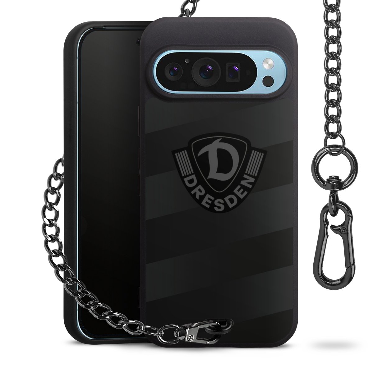 • Mattschwarze Handyhülle mit Metallkette