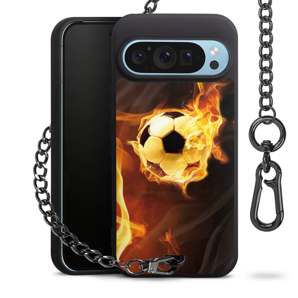 • Mattschwarze Handyhülle mit Metallkette