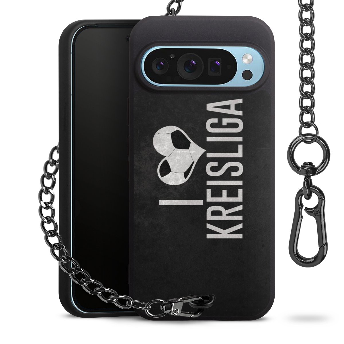 • Mattschwarze Handyhülle mit Metallkette