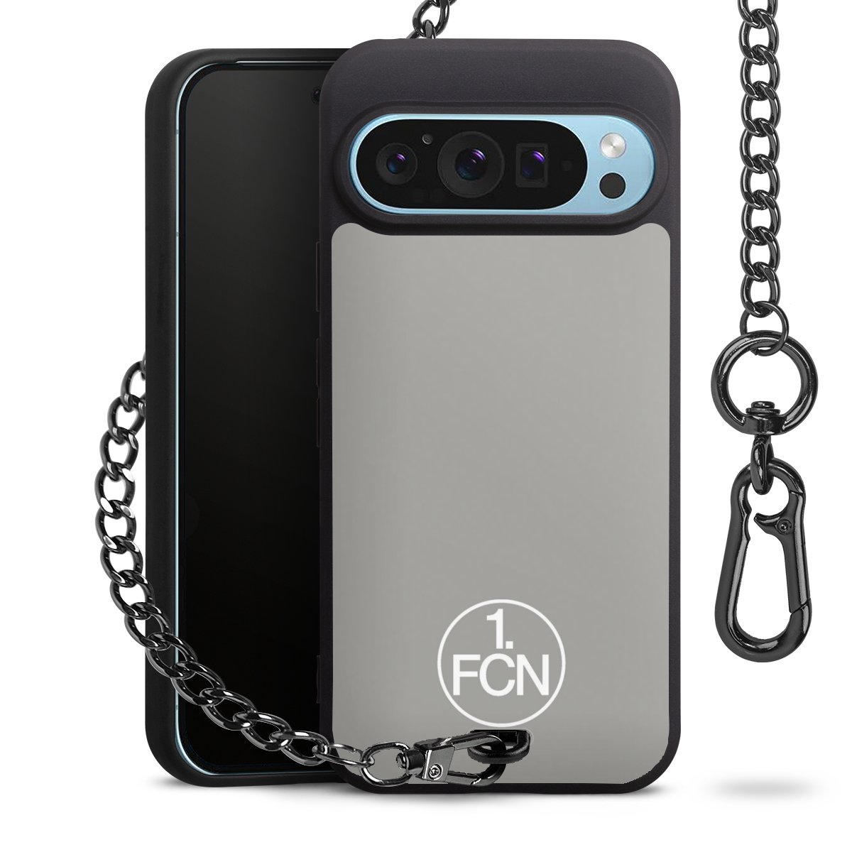 Die mattschwarze Silikon-Handyhülle besteht aus robustem TPU (thermoplastisches Polyurethan). Sie ist flexibel und schützt Dein Smartphone vor Stößen und Kratzern. Die Kette sowie der Karabinerhaken sind aus Metall in Gunmetal-Optik gefertigt. Für dieses Produkt kommen ausschließlich TÜV-geprüfte Materialien zum Einsatz.