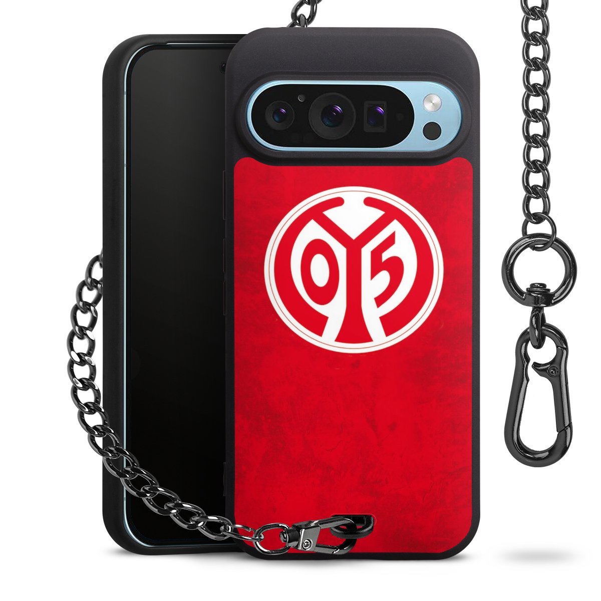 Die mattschwarze Silikon-Handyhülle besteht aus robustem TPU (thermoplastisches Polyurethan). Sie ist flexibel und schützt Dein Smartphone vor Stößen und Kratzern. Die Kette sowie der Karabinerhaken sind aus Metall in Gunmetal-Optik gefertigt. Für dieses Produkt kommen ausschließlich TÜV-geprüfte Materialien zum Einsatz.