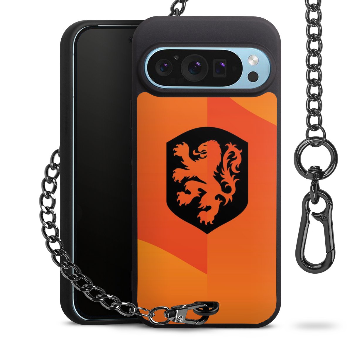 Die mattschwarze Silikon-Handyhülle besteht aus robustem TPU (thermoplastisches Polyurethan). Sie ist flexibel und schützt Dein Smartphone vor Stößen und Kratzern. Die Kette sowie der Karabinerhaken sind aus Metall in Gunmetal-Optik gefertigt. Für dieses Produkt kommen ausschließlich TÜV-geprüfte Materialien zum Einsatz.