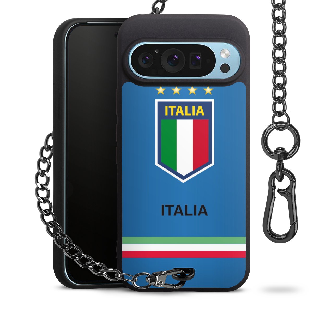 - Mattschwarze Handyhülle mit Metallkette