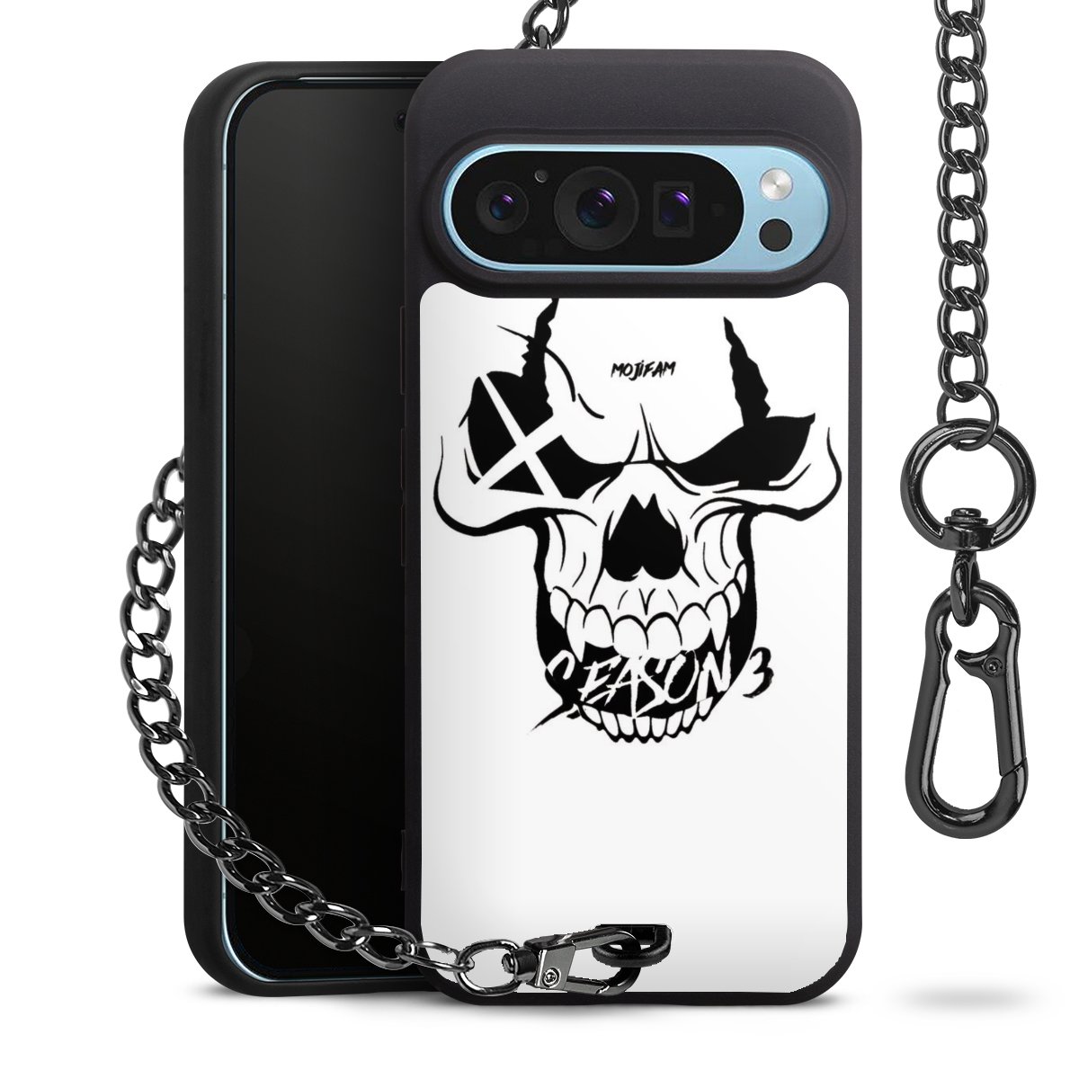 • Mattschwarze Handyhülle mit Metallkette