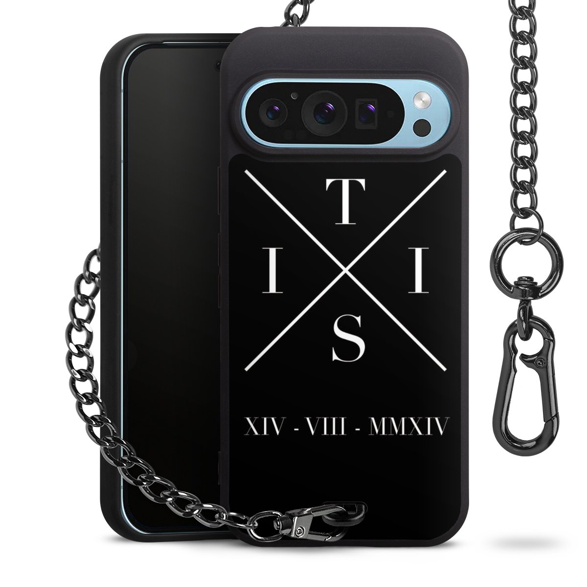 Die mattschwarze Silikon-Handyhülle besteht aus robustem TPU (thermoplastisches Polyurethan). Sie ist flexibel und schützt Dein Smartphone vor Stößen und Kratzern. Die Kette sowie der Karabinerhaken sind aus Metall in Gunmetal-Optik gefertigt. Für dieses Produkt kommen ausschließlich TÜV-geprüfte Materialien zum Einsatz.