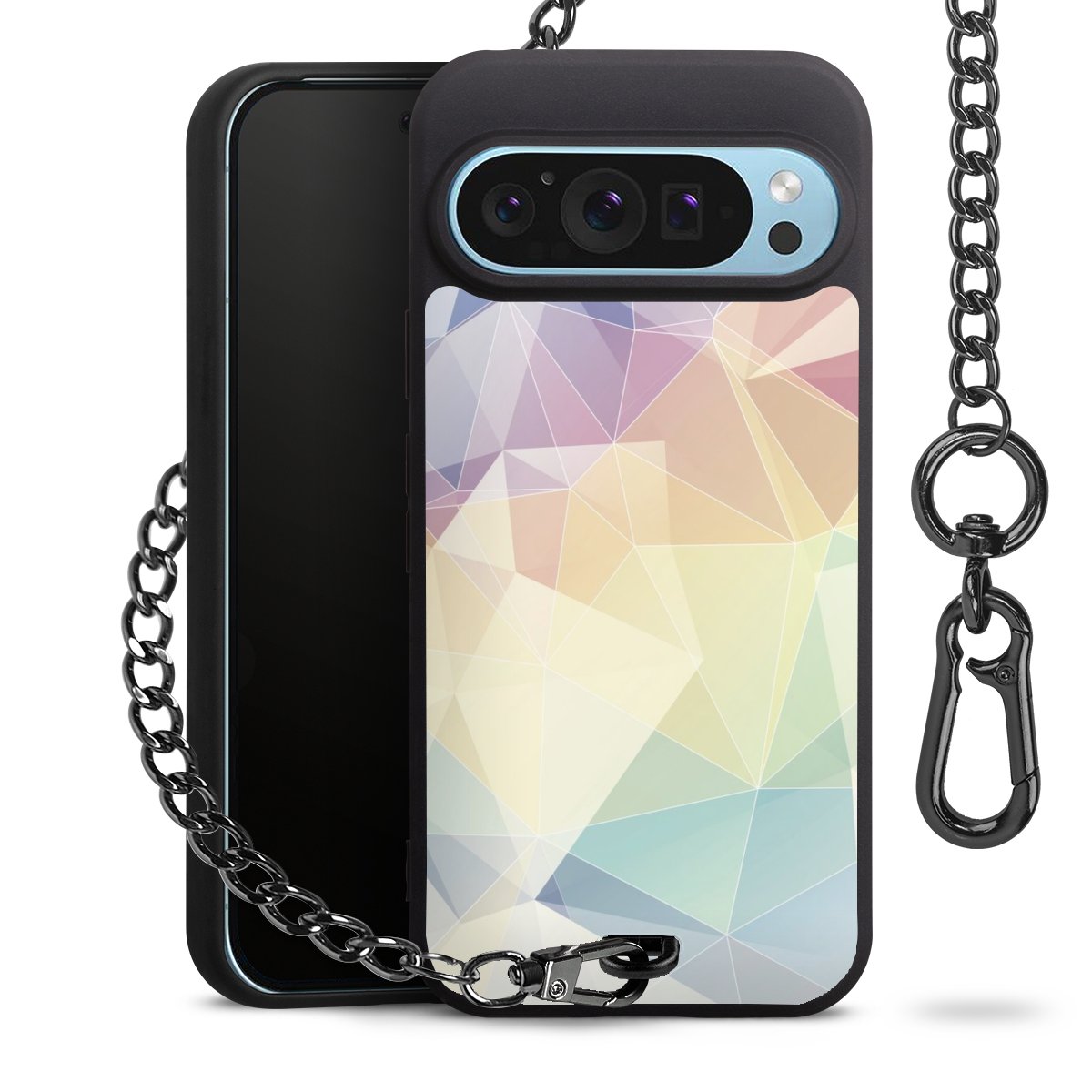 - Mattschwarze Handyhülle mit Metallkette