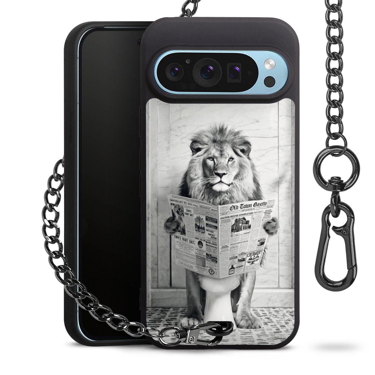 Die mattschwarze Silikon-Handyhülle besteht aus robustem TPU (thermoplastisches Polyurethan). Sie ist flexibel und schützt Dein Smartphone vor Stößen und Kratzern. Die Kette sowie der Karabinerhaken sind aus Metall in Gunmetal-Optik gefertigt. Für dieses Produkt kommen ausschließlich TÜV-geprüfte Materialien zum Einsatz.