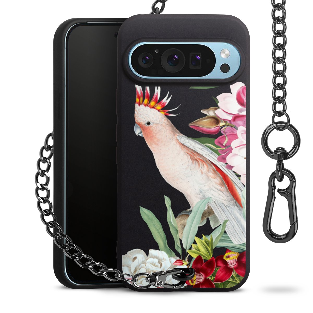 Die mattschwarze Silikon-Handyhülle besteht aus robustem TPU (thermoplastisches Polyurethan). Sie ist flexibel und schützt Dein Smartphone vor Stößen und Kratzern. Die Kette sowie der Karabinerhaken sind aus Metall in Gunmetal-Optik gefertigt. Für dieses Produkt kommen ausschließlich TÜV-geprüfte Materialien zum Einsatz.