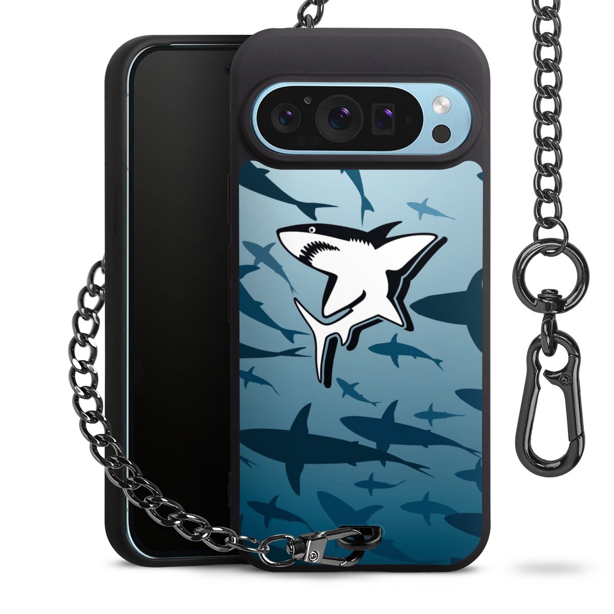 • Mattschwarze Handyhülle mit Metallkette