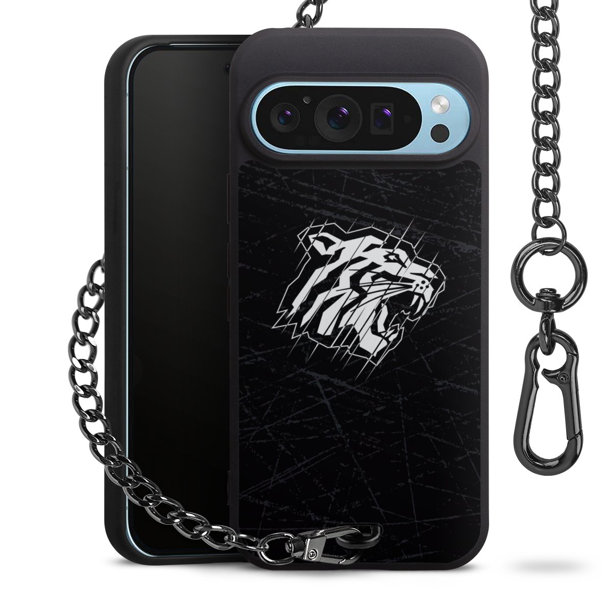 Die mattschwarze Silikon-Handyhülle besteht aus robustem TPU (thermoplastisches Polyurethan). Sie ist flexibel und schützt Dein Smartphone vor Stößen und Kratzern. Die Kette sowie der Karabinerhaken sind aus Metall in Gunmetal-Optik gefertigt. Für dieses Produkt kommen ausschließlich TÜV-geprüfte Materialien zum Einsatz.