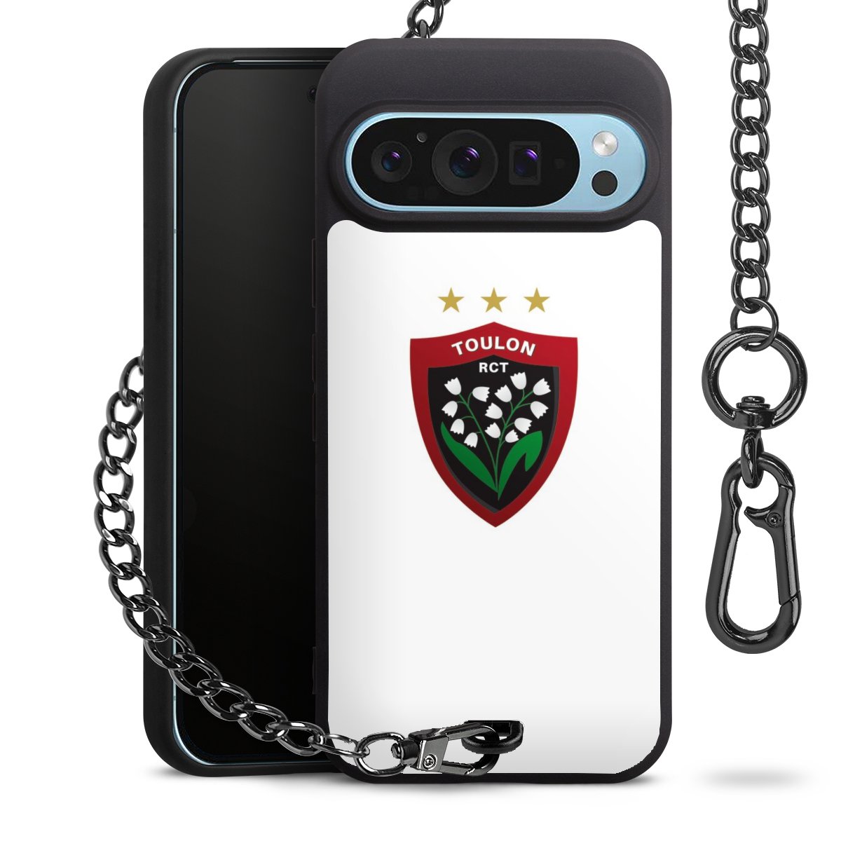 • Mattschwarze Handyhülle mit Metallkette