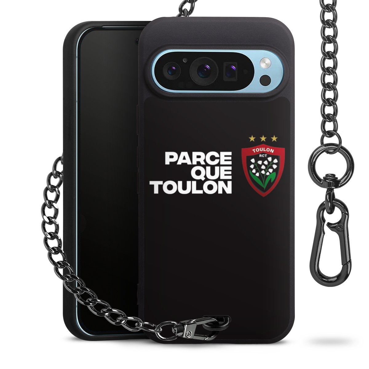 - Mattschwarze Handyhülle mit Metallkette