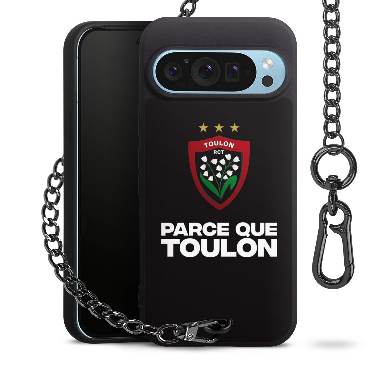 • Mattschwarze Handyhülle mit Metallkette
