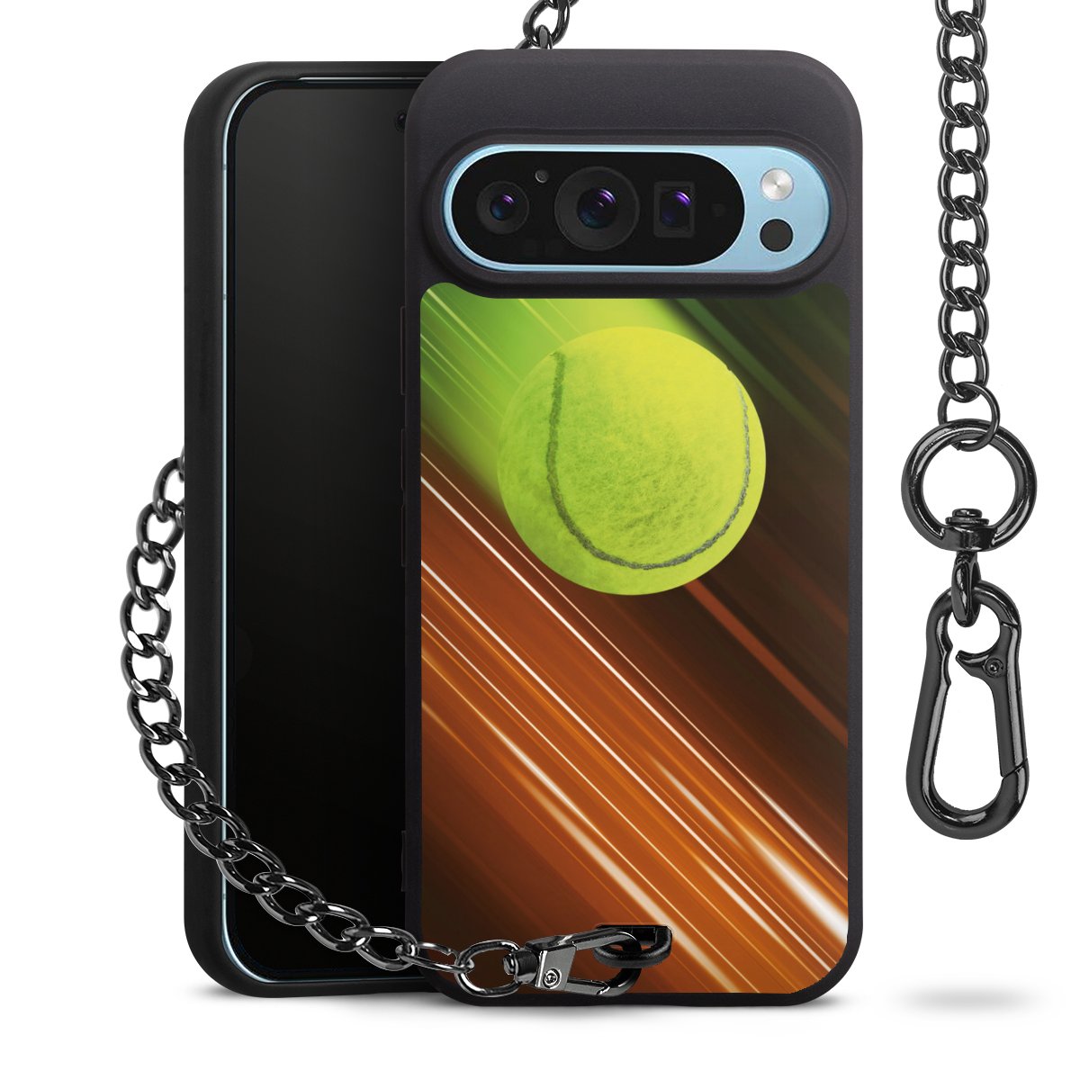 - Mattschwarze Handyhülle mit Metallkette