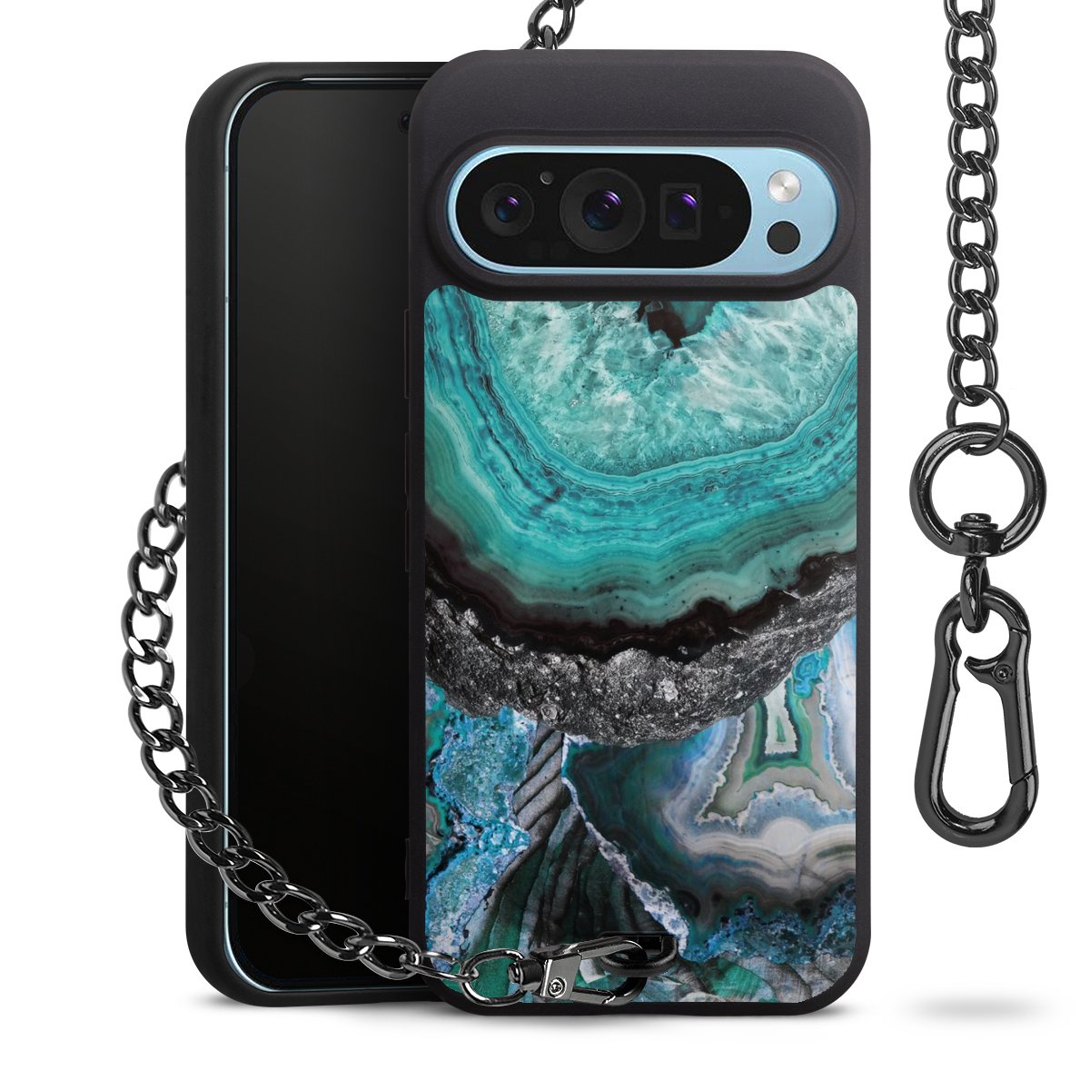 • Mattschwarze Handyhülle mit Metallkette