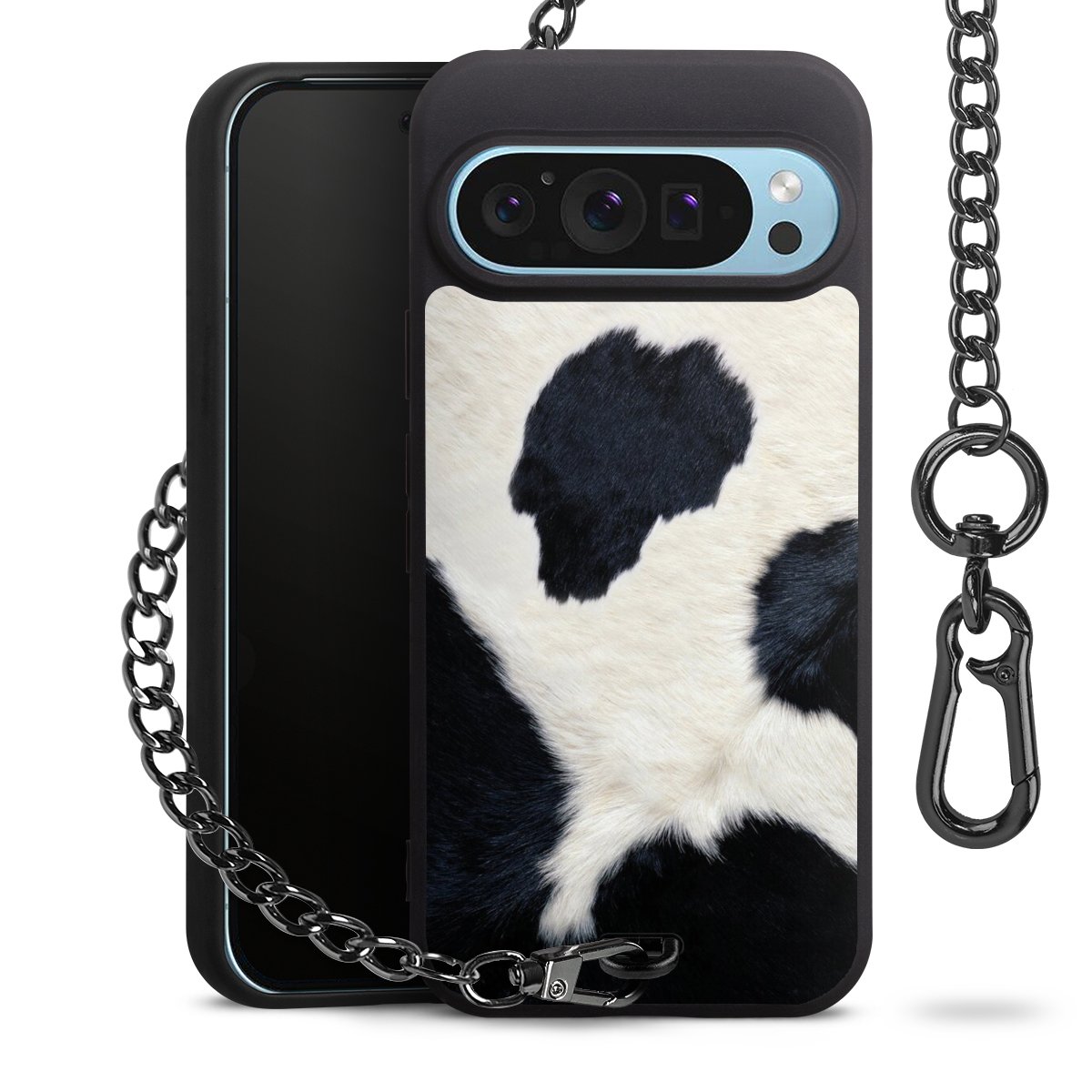 - Mattschwarze Handyhülle mit Metallkette
