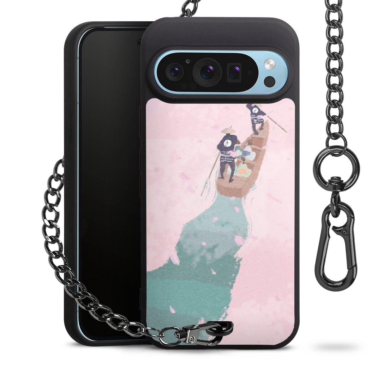 • Mattschwarze Handyhülle mit Metallkette