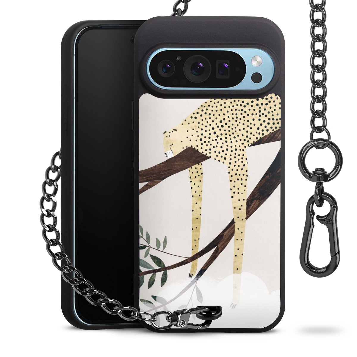 Die mattschwarze Silikon-Handyhülle besteht aus robustem TPU (thermoplastisches Polyurethan). Sie ist flexibel und schützt Dein Smartphone vor Stößen und Kratzern. Die Kette sowie der Karabinerhaken sind aus Metall in Gunmetal-Optik gefertigt. Für dieses Produkt kommen ausschließlich TÜV-geprüfte Materialien zum Einsatz.