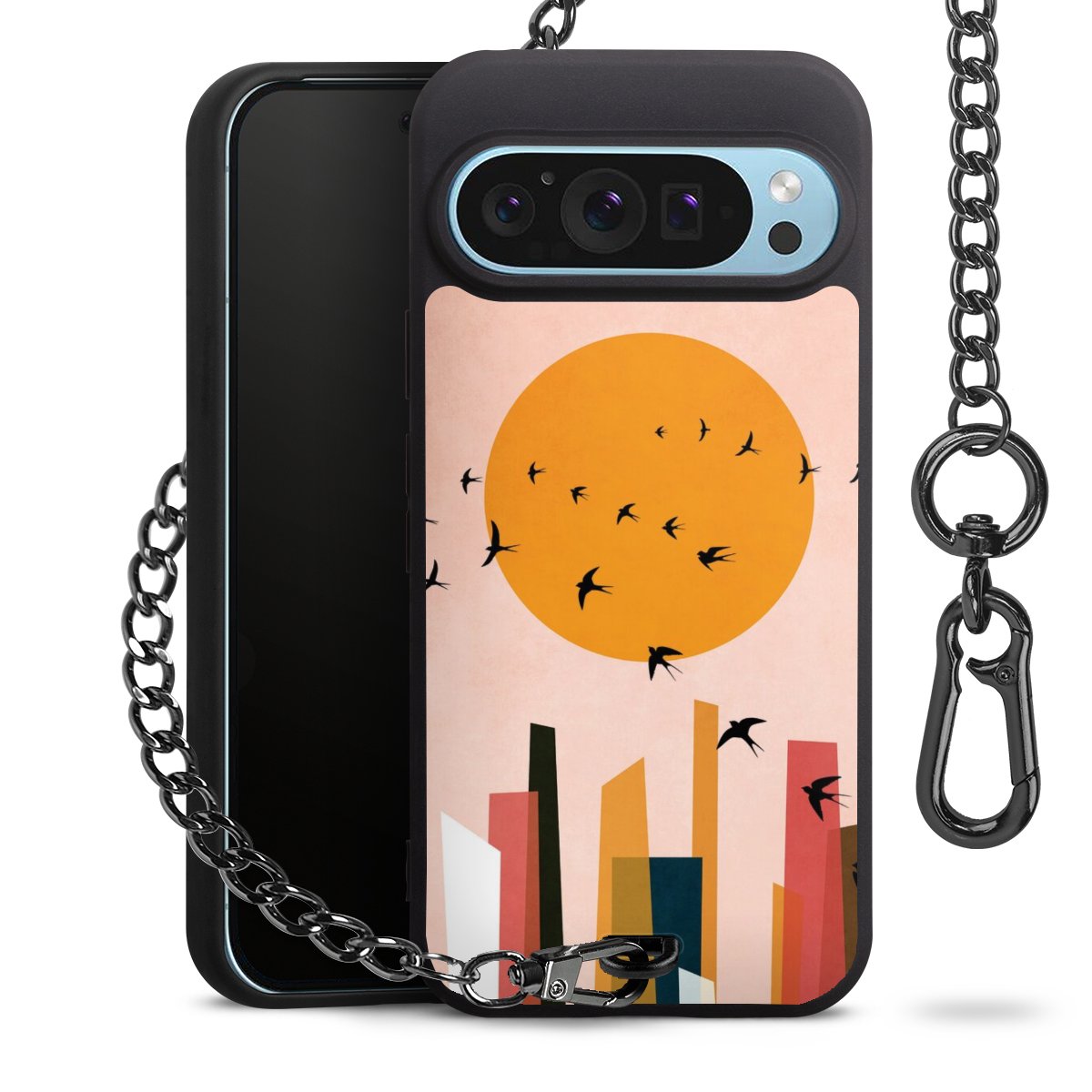 • Mattschwarze Handyhülle mit Metallkette