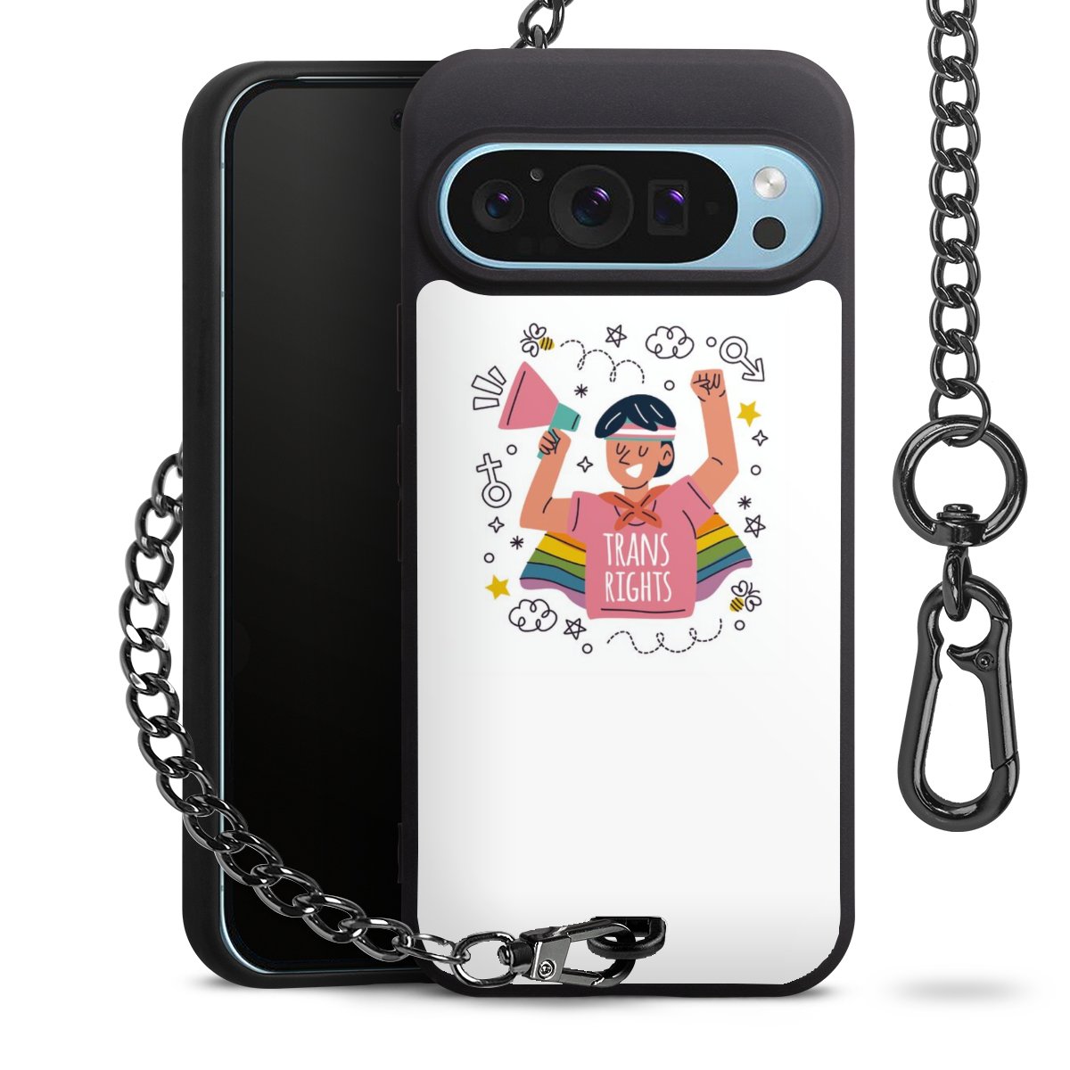 Die mattschwarze Silikon-Handyhülle besteht aus robustem TPU (thermoplastisches Polyurethan). Sie ist flexibel und schützt Dein Smartphone vor Stößen und Kratzern. Die Kette sowie der Karabinerhaken sind aus Metall in Gunmetal-Optik gefertigt. Für dieses Produkt kommen ausschließlich TÜV-geprüfte Materialien zum Einsatz.