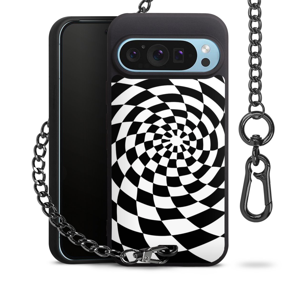 • Mattschwarze Handyhülle mit Metallkette