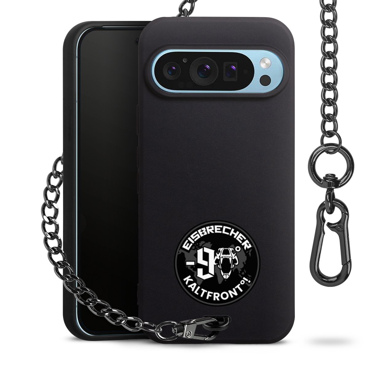 • Mattschwarze Handyhülle mit Metallkette