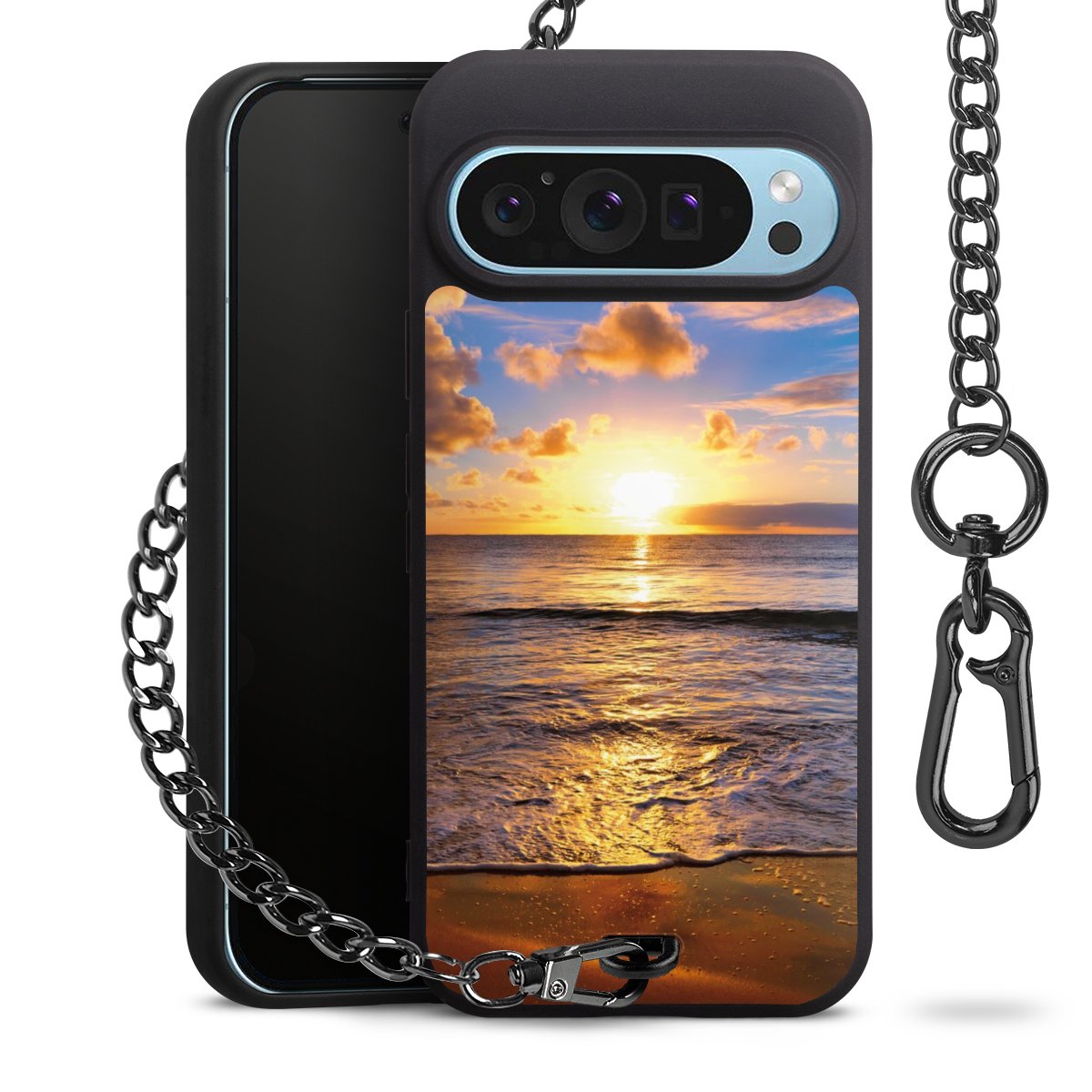 • Mattschwarze Handyhülle mit Metallkette