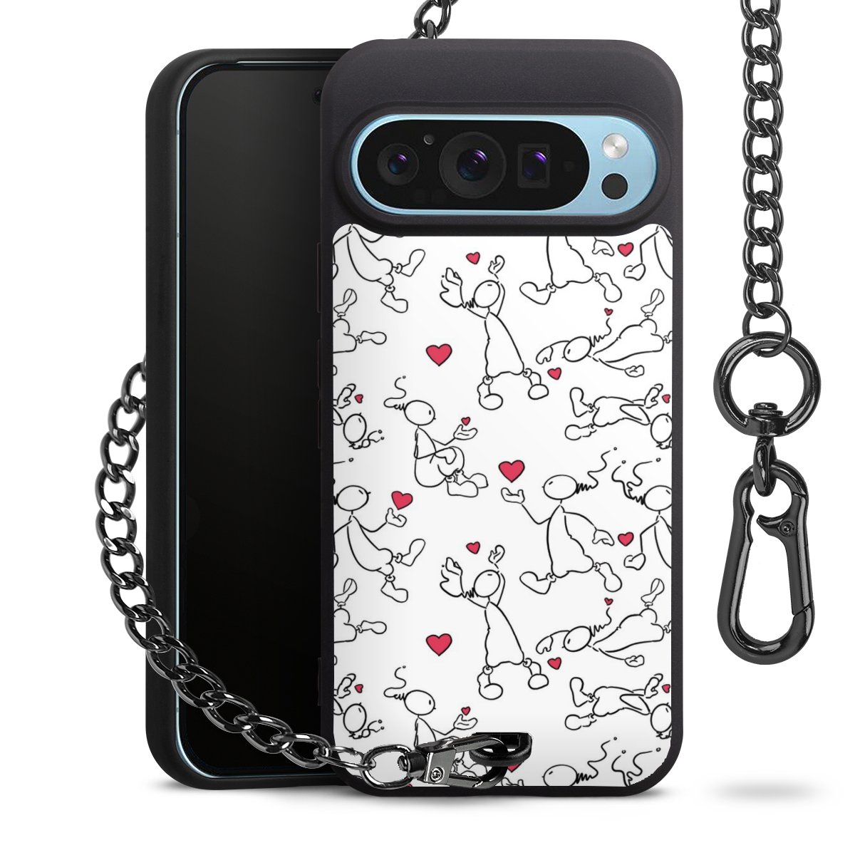 • Mattschwarze Handyhülle mit Metallkette