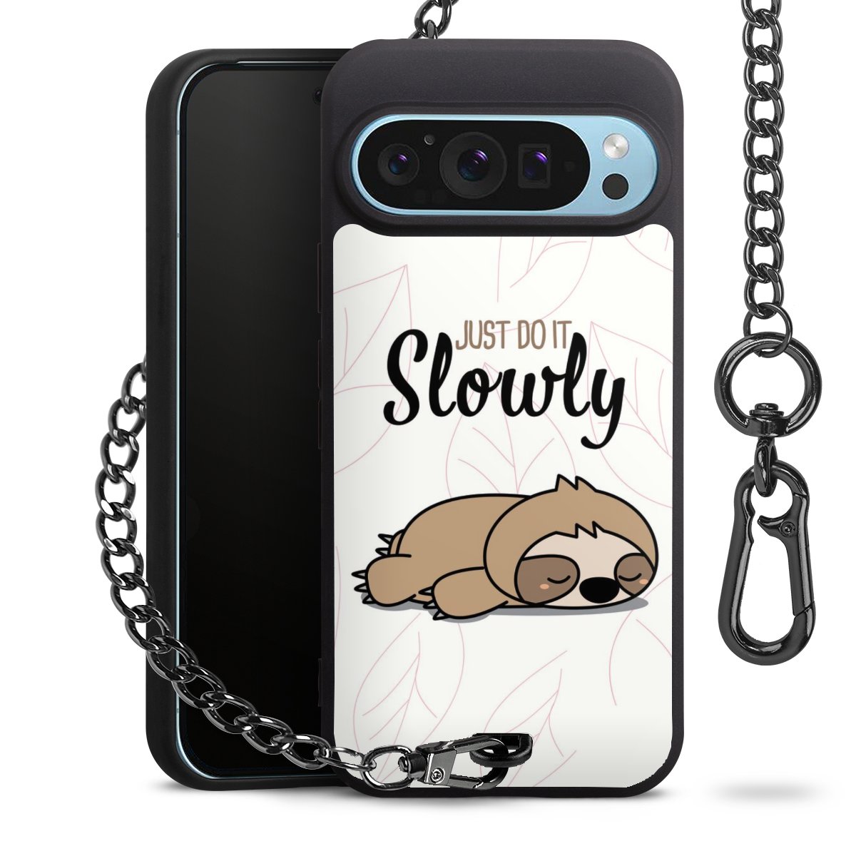 - Mattschwarze Handyhülle mit Metallkette