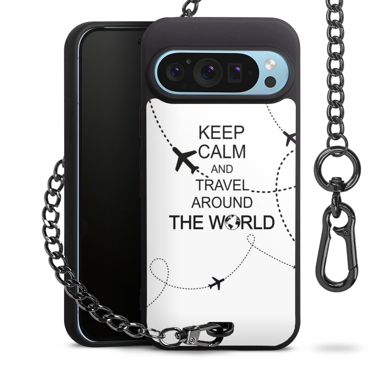 Die mattschwarze Silikon-Handyhülle besteht aus robustem TPU (thermoplastisches Polyurethan). Sie ist flexibel und schützt Dein Smartphone vor Stößen und Kratzern. Die Kette sowie der Karabinerhaken sind aus Metall in Gunmetal-Optik gefertigt. Für dieses Produkt kommen ausschließlich TÜV-geprüfte Materialien zum Einsatz.