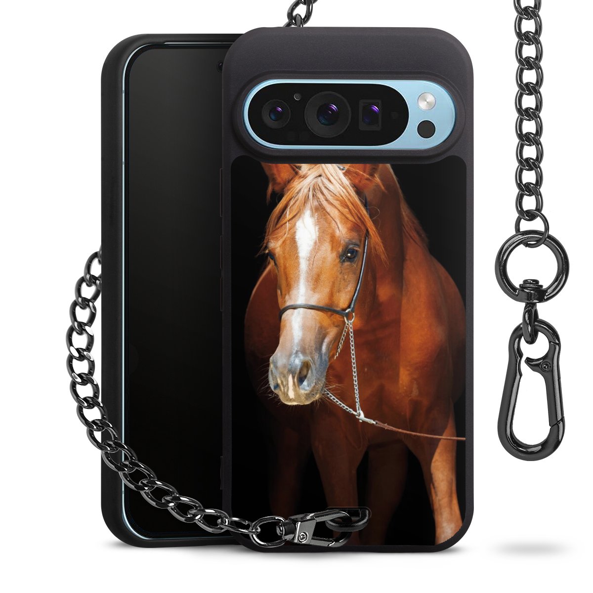 • Mattschwarze Handyhülle mit Metallkette