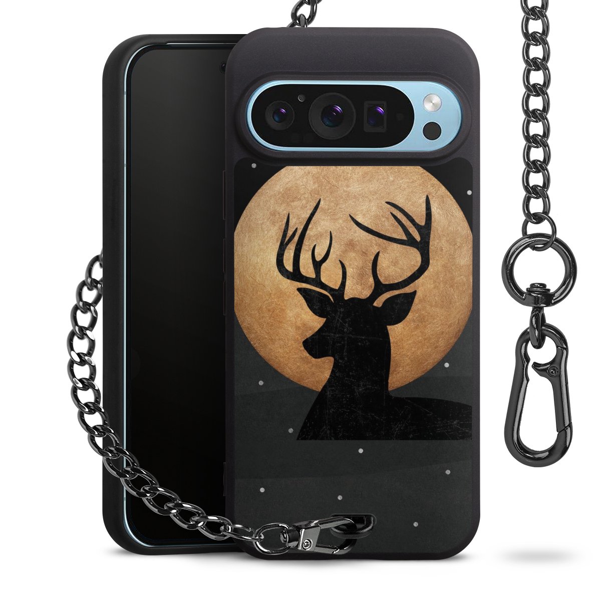 • Mattschwarze Handyhülle mit Metallkette