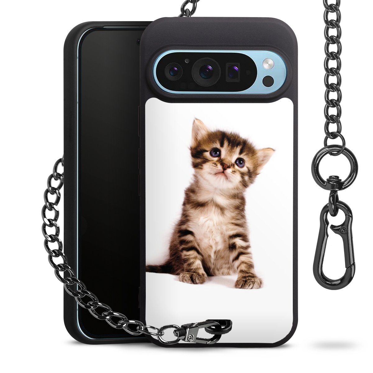 - Mattschwarze Handyhülle mit Metallkette