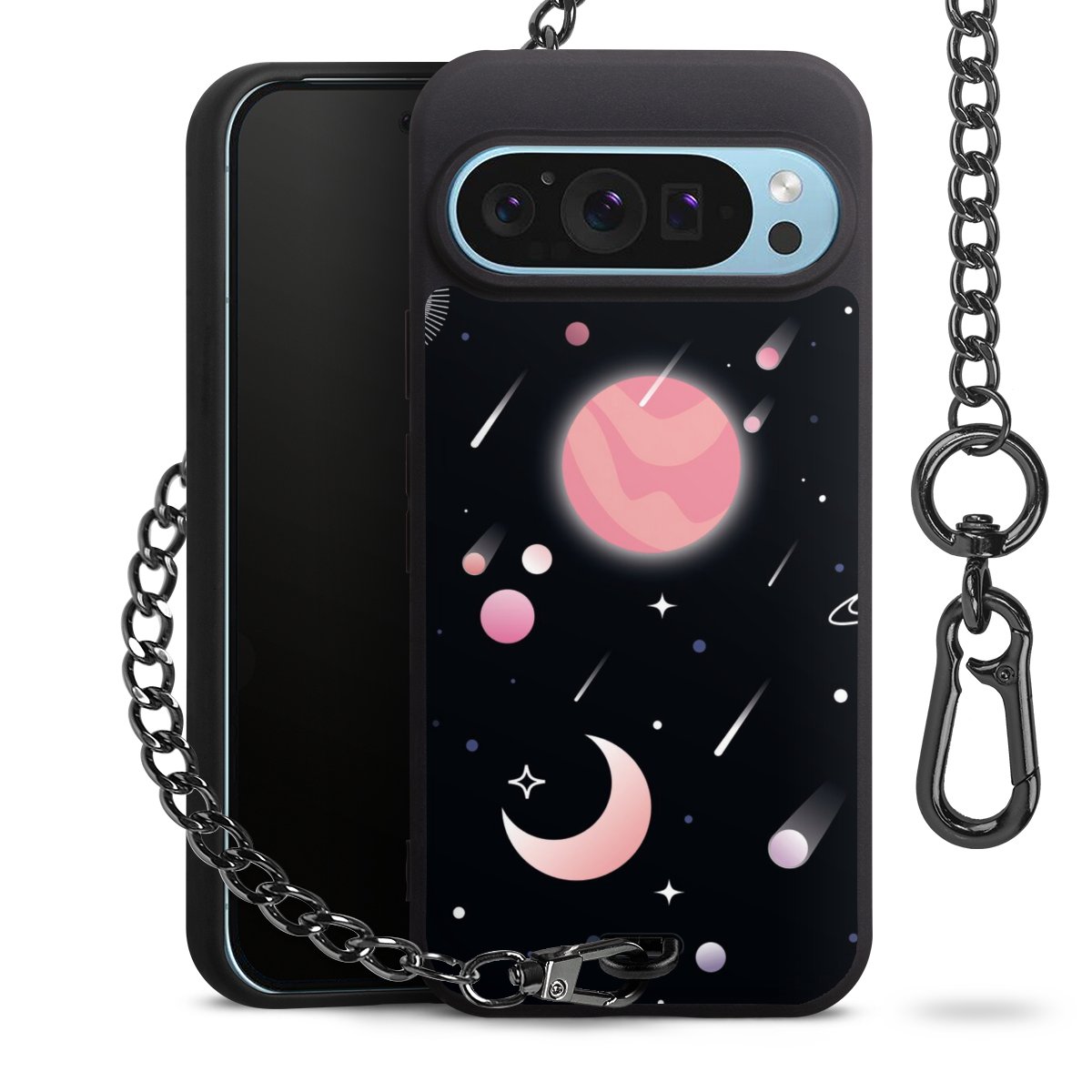 • Mattschwarze Handyhülle mit Metallkette