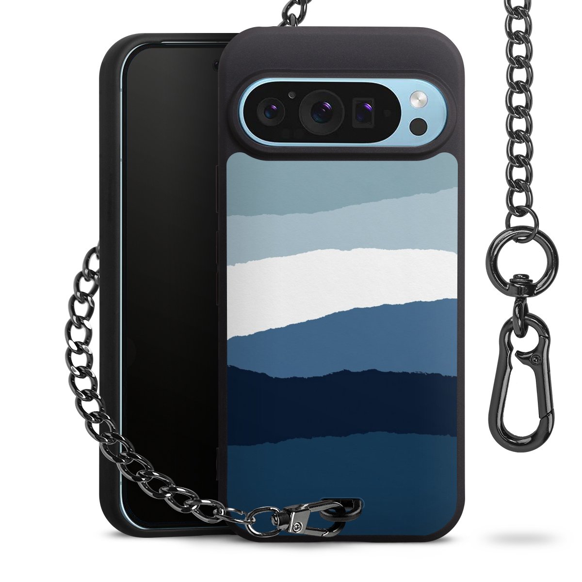 Die mattschwarze Silikon-Handyhülle besteht aus robustem TPU (thermoplastisches Polyurethan). Sie ist flexibel und schützt Dein Smartphone vor Stößen und Kratzern. Die Kette sowie der Karabinerhaken sind aus Metall in Gunmetal-Optik gefertigt. Für dieses Produkt kommen ausschließlich TÜV-geprüfte Materialien zum Einsatz.