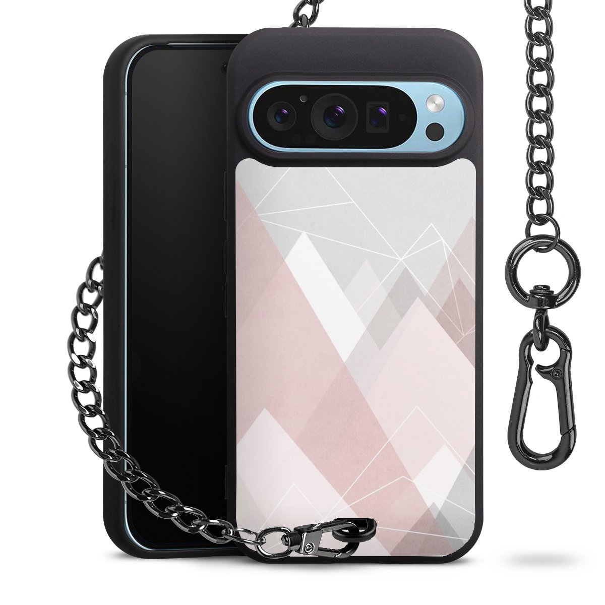 • Mattschwarze Handyhülle mit Metallkette